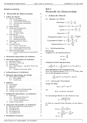 Werkstoffe Der Elektrotechnik Formelsammlung Docsity