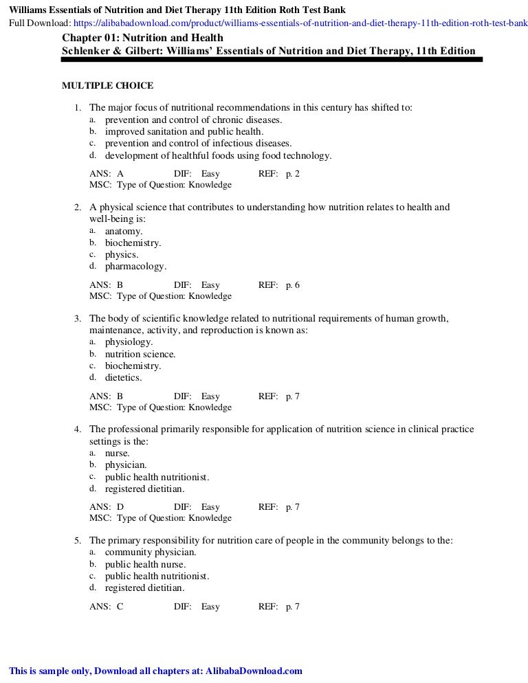 Williams Essentials Of Nutrition And Diet Therapy 11th Edition Roth T