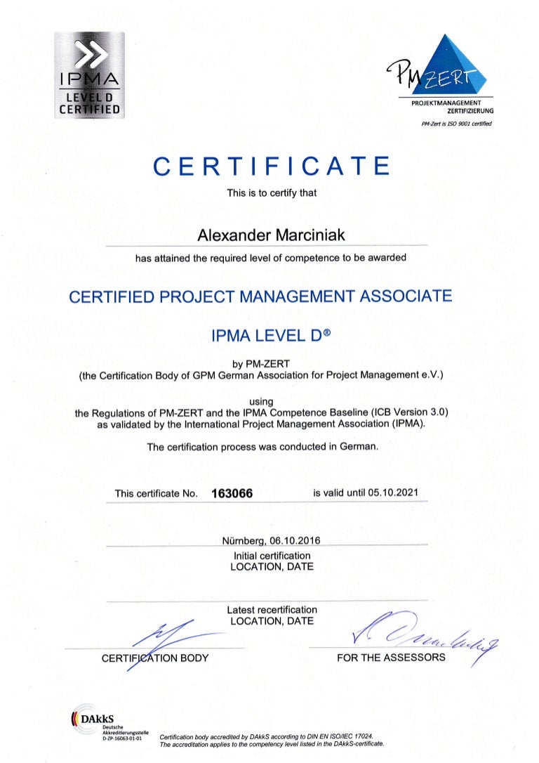 October 17 New Certification Certified Project Management Associate Ipma Level D Iftp Berlin Iftp Berlin