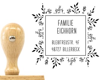 Personalisierter Stempel Mit Namen Adresse Adressstempel Blumenranken Amazon De Kuche Haushalt