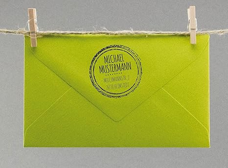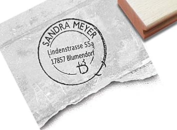 Personalisierter Stempel Mit Namen Adresse Individueller Adressstempel Rund Mit Linien Motive Amazon De Kuche Haushalt