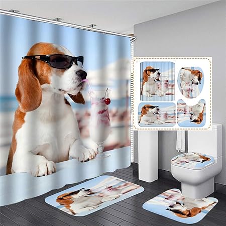 Xingyundeshoop Hund Essen Eis Duschvorhang Wasserdicht Waschbar Bad Polyestergewebe Bad Matte Vier Stuck Anzug 1x180cm Amazon De Kuche Haushalt