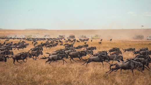 Kenya Blue Wildebeests With Safari Jeeps At Masai Mara National Reserve Cb Cbpictures Westend61