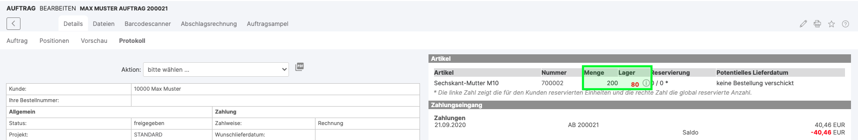 Auftrag Lager