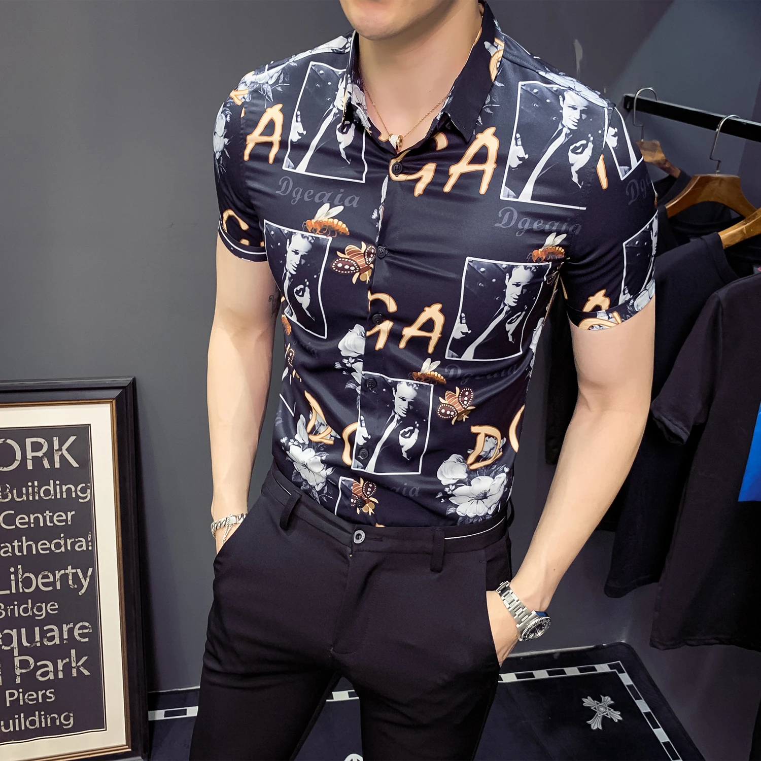 England Manner Druck Kurzarm Shirt Designer Nacht Club Tuxedo Shirts Manner Slim Fit Hemd Streetwear Camisa Sozialen Masculina Legere Hemden Aliexpress