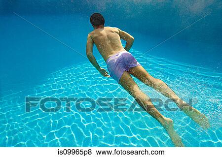 Junger Mann Schwimmen Unterwasser In Schwimmbad Stock Foto Isp8 Fotosearch