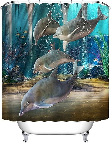 Lb Delphine Schwimmen Unter Wasser In Der Nahe Von Antiken Tempel Duschvorhang Mit Haken 180cm X 180cm Amazon De Kuche Haushalt