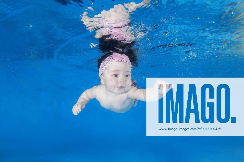 Stockfoto Maedchen Baby Lernt Schwimmen Unter Wasser In