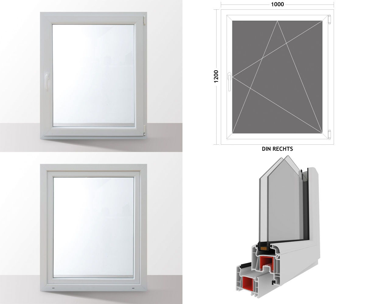 Dreh Kipp Fenster 900x1100 Mm 6 Kammern Weiss Rechts Kunststofffenster 90x110 Cm