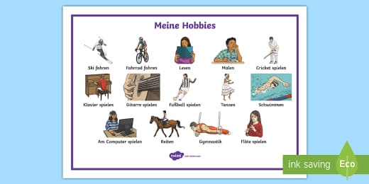 Being able to talk about hobbies in German can be a great way to get to know someone better So how do you tell people what you like to do in German?. Network Im Moment ist mein Beruf professioneller Pokerspieler Ich habe einen Hintergrund in der Wirtschaft und meine Hobbys sind unter anderen Philosophie, Sport, Politik, Ernährung und Lernen im Allgemeinen My occupation at the moment is a professional poker player. Contextual translation of "meine hobbys sind sport" into English Human translations with examples my hobbies, my timetable, a hobby of mine.