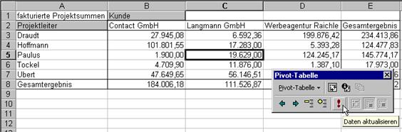Aktualisierung Der Pivot Tabelle Conaktiv Handbuch