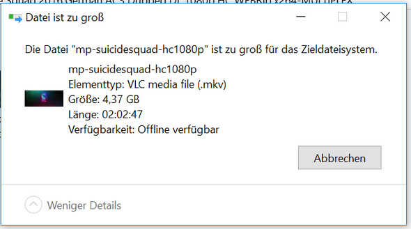 Datei Zu Gross Die Datei Ist Zu Gross Fur Das Zieldateisystem Windows Nachrichten