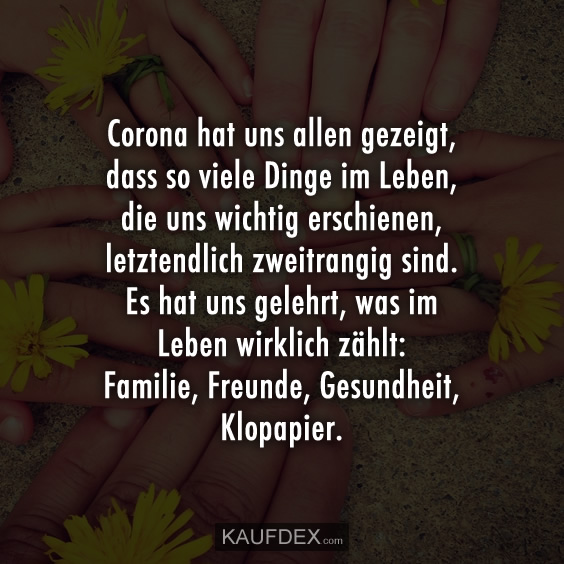 Corona Hat Uns Allen Gezeigt Dass So Viele Dinge Im Leben Die Uns Wichtig Erschienen Letztendlich Zweitrangig Sind Es Hat Uns Gelehrt Was Im Leben Wirklich Zahlt Familie Freunde Gesundheit Klopapier