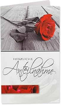 10 Trauerkarte Rote Rose Mit Text Herzliche Anteilnahme In Silberfolie 9 5 X 16 Cm Weiss Mit Passenden Umschlagen Gustav Neuser Amazon De Burobedarf Schreibwaren
