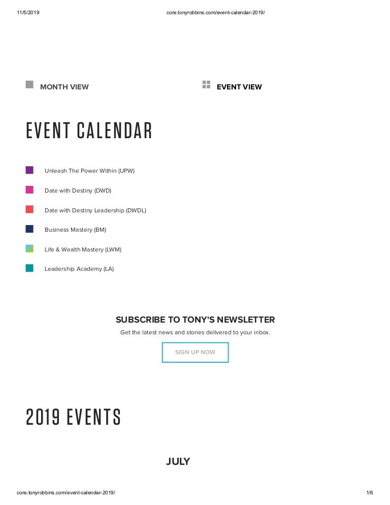 Tony Robbins Event Calendar