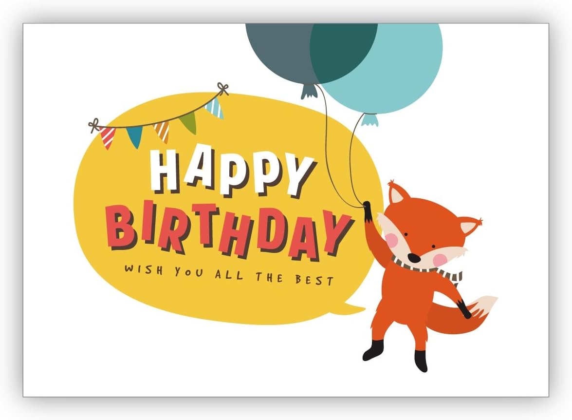 Susse Geburtstagskarte Mit Fliegendem Fuchs An Ballons Happy Birthday Wish You All The Best Direkt Versenden Mit Ihrem Text Als Einleger Schone Gluckwunschkarte Mit Umschlag Amazon De Burobedarf Schreibwaren