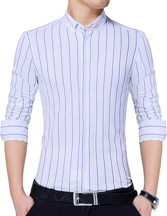 Jkwes Men S Button Down Dress Shirt Long Sleeve Slim Fit Vertical Striped Shirt At Amazon Men S Clothing Store