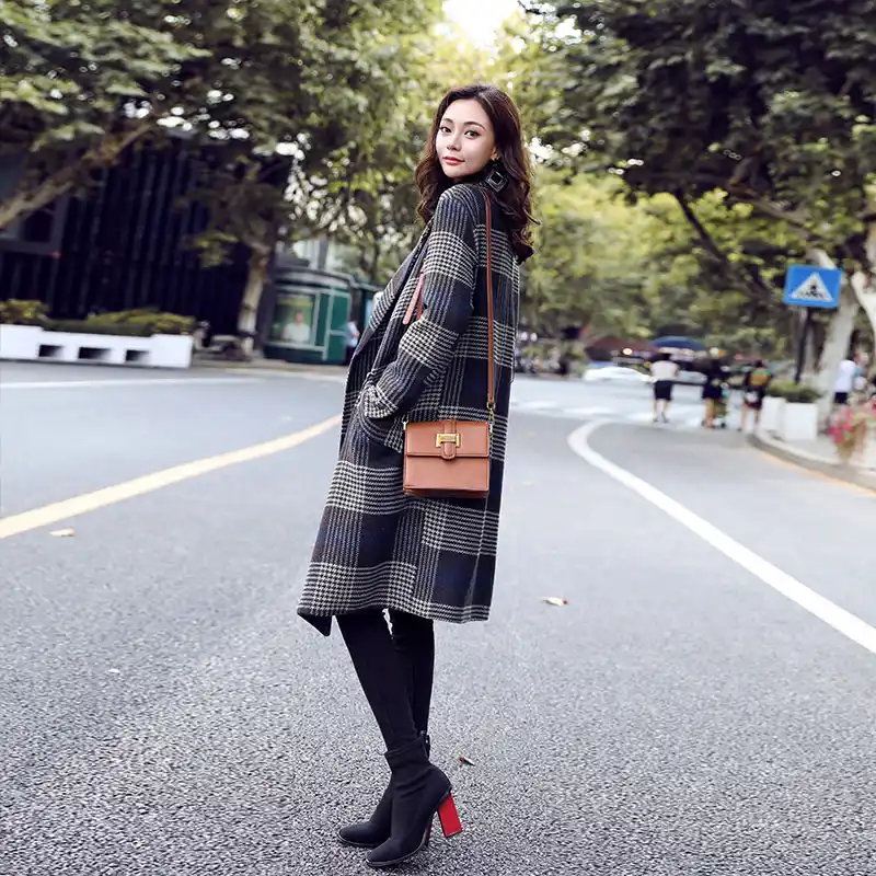 Neue Englisch Stil Plaid Woll Mantel Frauen Herbst Und Winter 19 Mode Drehen Unten Kragen Lose Plaid Wolle Blends Oberbekleidung Wolle Mischungen Aliexpress