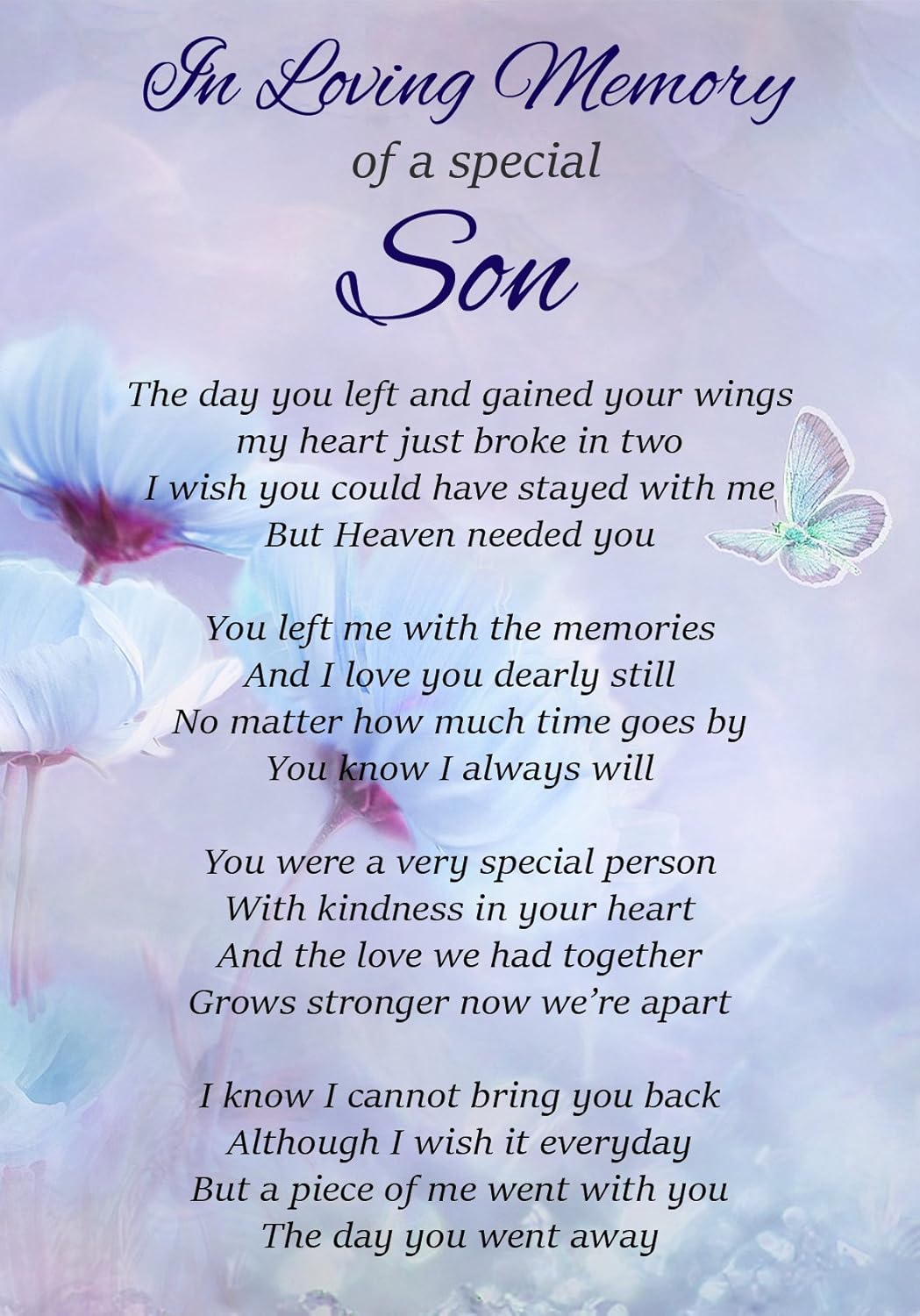 In Loving Memory Of A Special Son Memorial Graveside Funeral Poem Keepsake Card Includes Free Ground Stake F311 Amazon Co Uk Kitchen Home