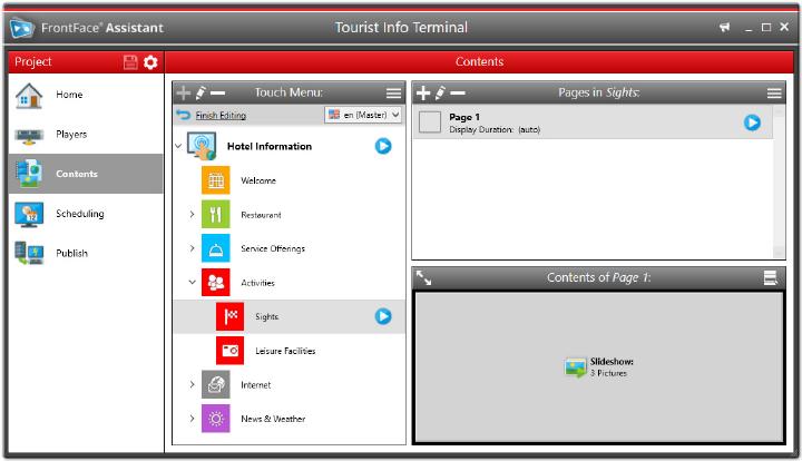 FrontFace for Public Displays is Internetenabled player software for displaying any kind of Web content, Videos, Flash, Sliverlight, Images, and XPS documents or RSS feeds on public displays It.