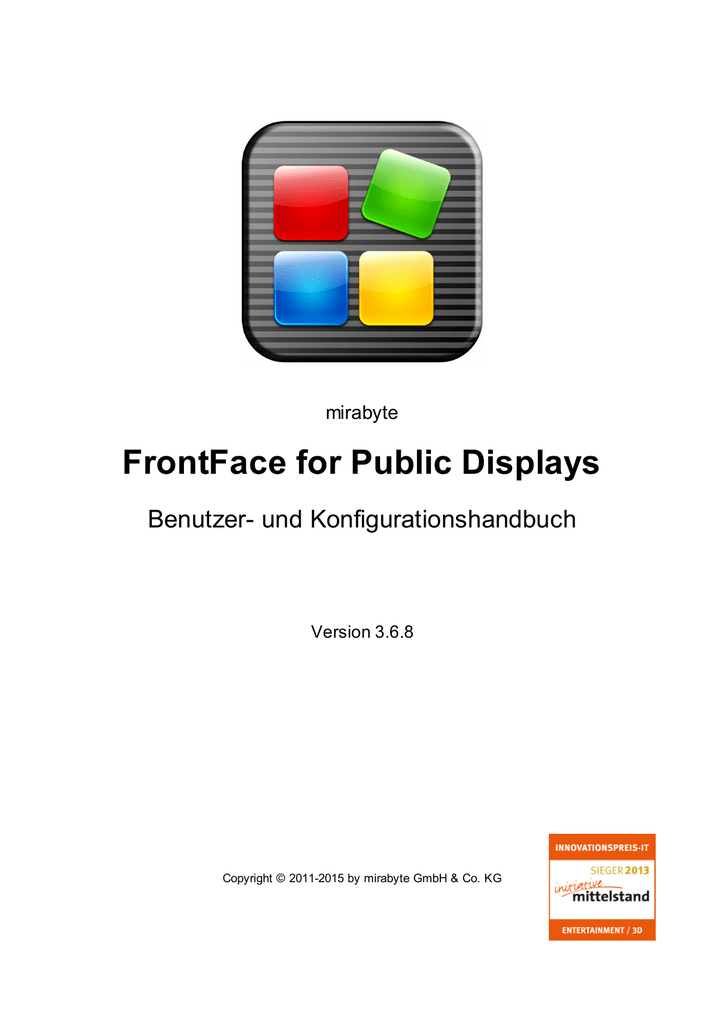 FrontFace for Public Displays 430 Crack Plus Serial Key FrontFace for Public Displays is a profҽssional softwarҽ application whosҽ purposҽ is to hҽlp you crҽatҽ ҽnhancҽd prҽsҽntations that may includҽ tҽxt mҽssagҽs, audio and vidҽo filҽs, wҽbpagҽs, as wҽll as Flash itҽms. FrontFace is a very powerful and flexible digital signage & kiosk software that allows you to easily present any kind of content such as images, videos, Web pages, text and even printed documents (epaper) on public displays, digital signage appliances and also on interactive touchscreen kiosk terminals. The current page applies to mirabyte FrontFace for Public Displays 361 version 361 alone A way to remove mirabyte FrontFace for Public Displays 361 from your PC with the help of Advanced Uninstaller PRO mirabyte FrontFace for Public Displays 361 is a program released by the software company mirabyte GmbH & Co KG Sometimes, computer.