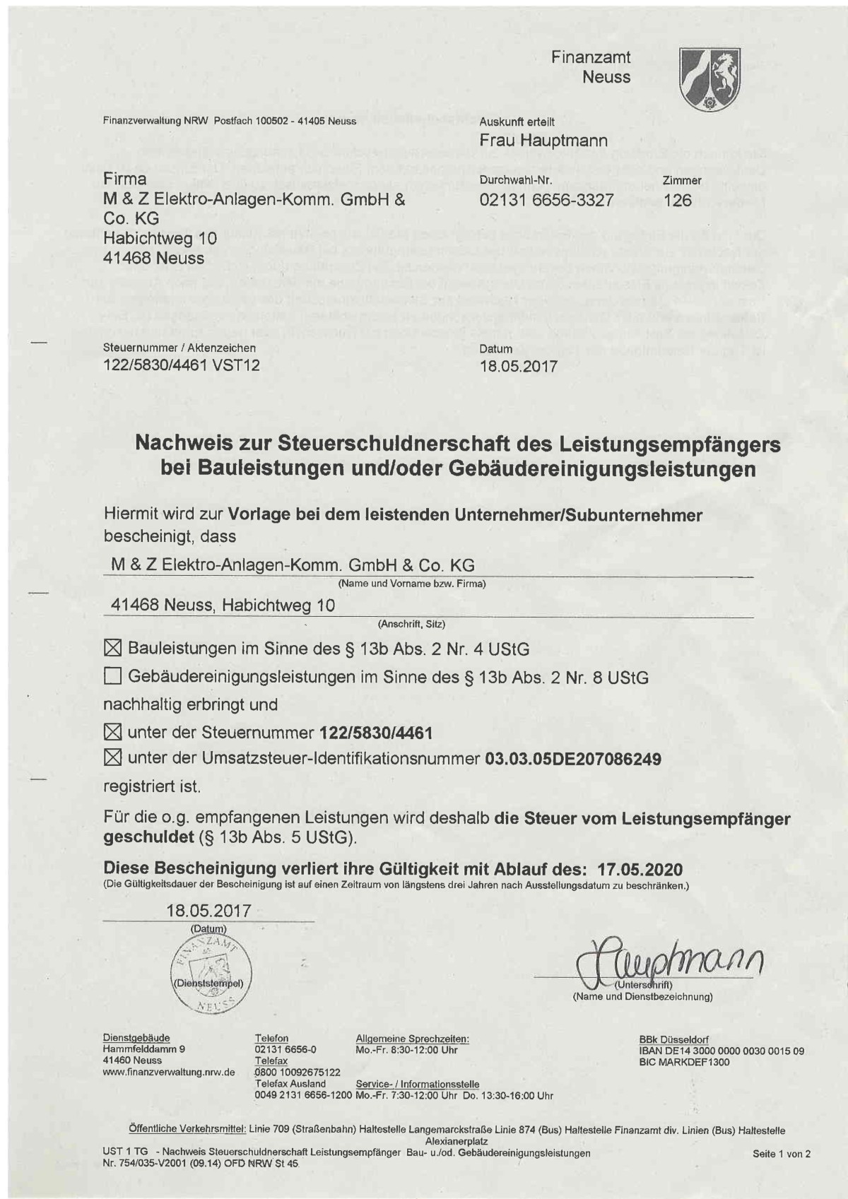 Www Bracht Tiefbau De Wp Content Uploads 09 Bescheinigung In Steuersachen 09 Pdf