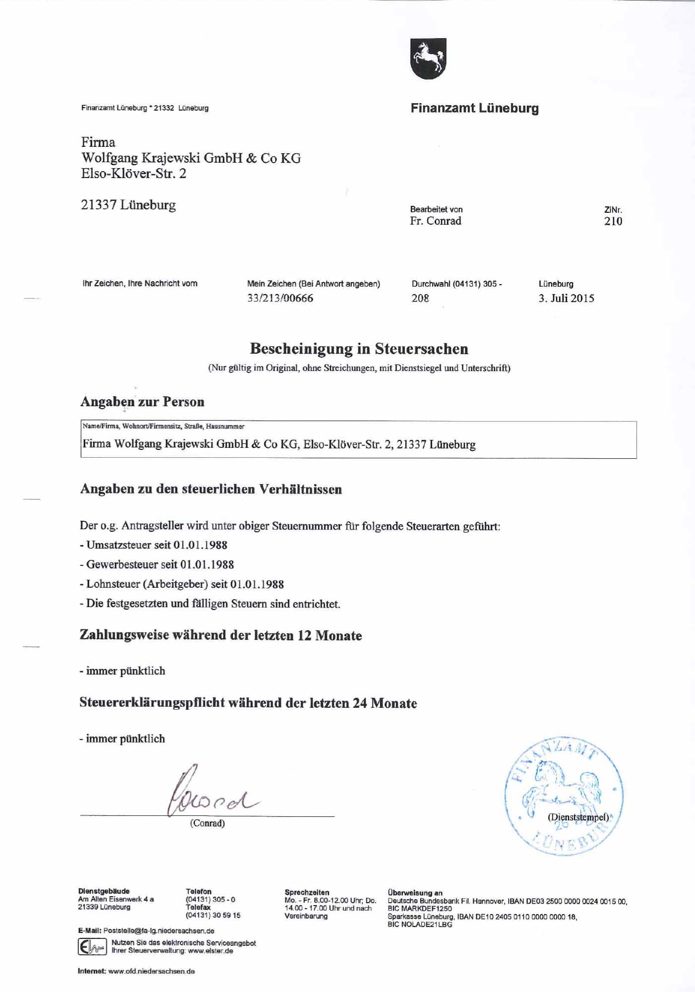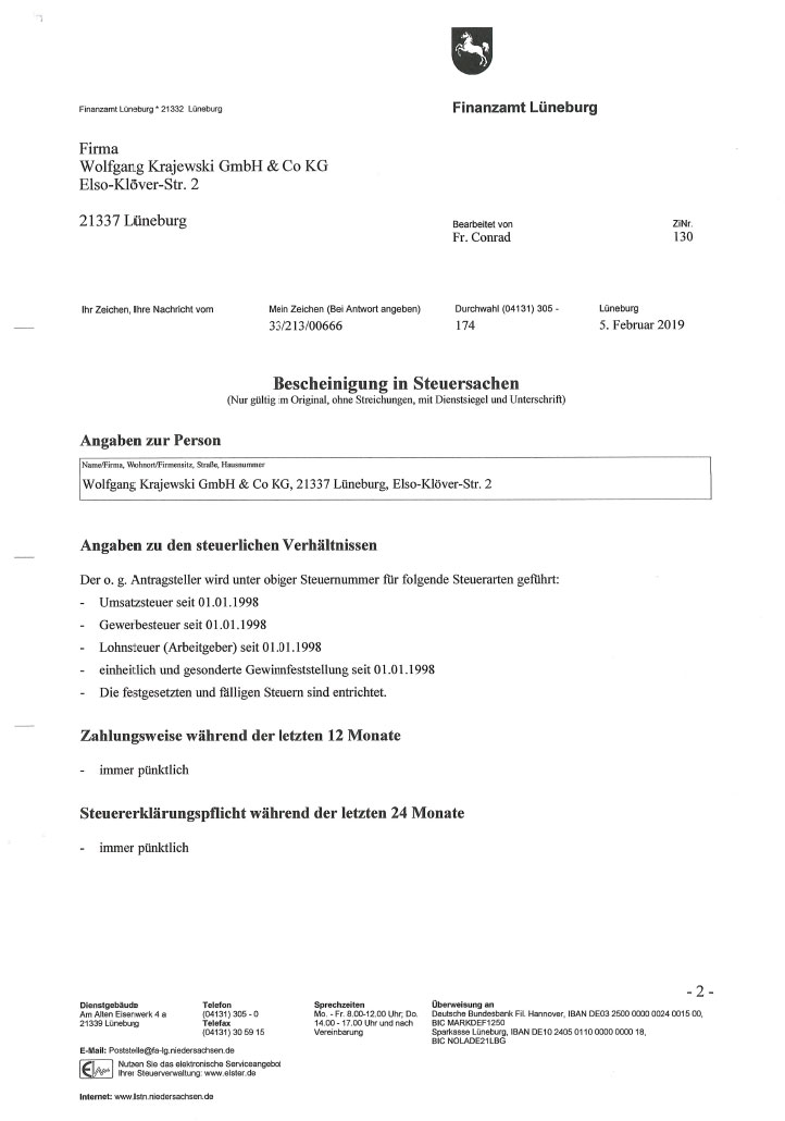 Krajewski Pumpentechnik Bescheinigung In Steuersachen