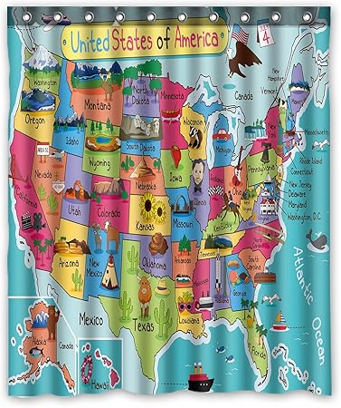 Fmshpon Duschvorhang Mit Lustigen Fakten Motiv Geographie Usa Karte Kinderkarte Der Vereinigten Staaten Wasserdichter Stoff Badezimmer Duschvorhang Grosse 152 4 X 1 9 Cm Amazon De Kuche Haushalt