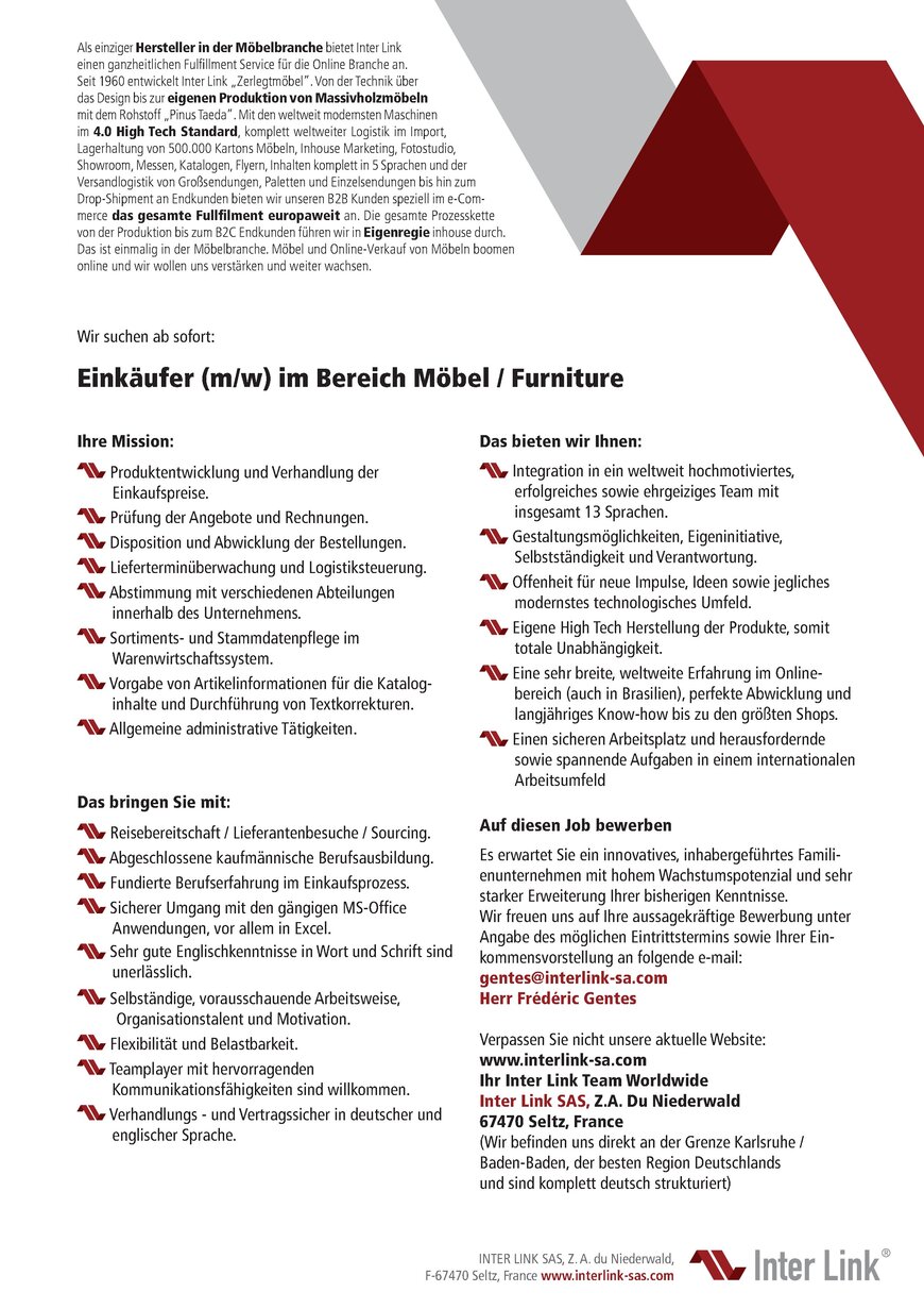 Einkaufer M W Im Bereich Mobel Furniture In Seltz Xing Jobs