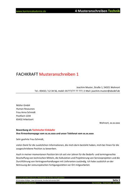 4 X Anschreiben Technischer Einkaufer M W Karriereakademie