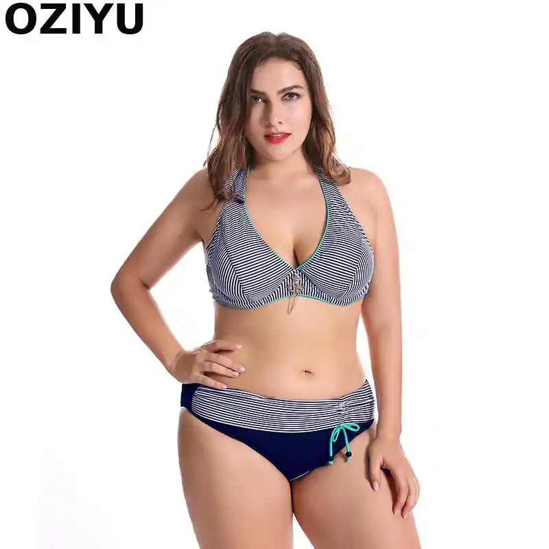 Classical E F G Cup Stripe Push Up Bikini Set Big Plus Size Mid Waist Bottom Womens Swimwear Swimsuits Halter 50 58 Sets Size Set Womenset Bikini Aliexpress