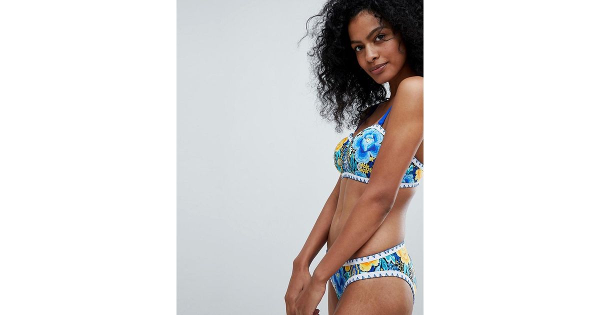 Freya Jungle Flower Dd To G Cup Bikini Top Blue Floral Bikini Village