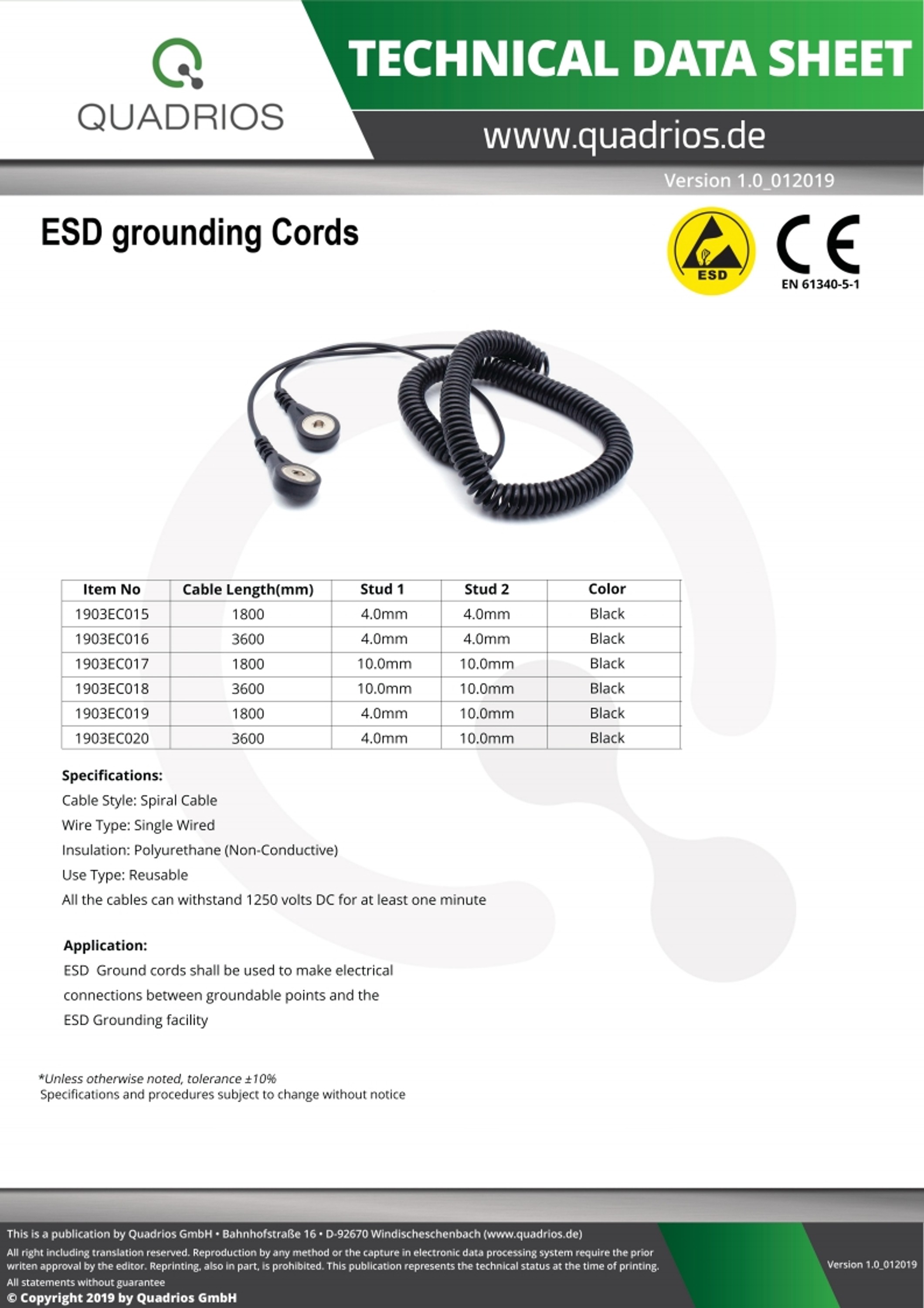Esd Schutz Spiralkabel Erdungskabel 3 6 M 2 X Druckknopf 4 Mm Din En 5 1 Quadrios