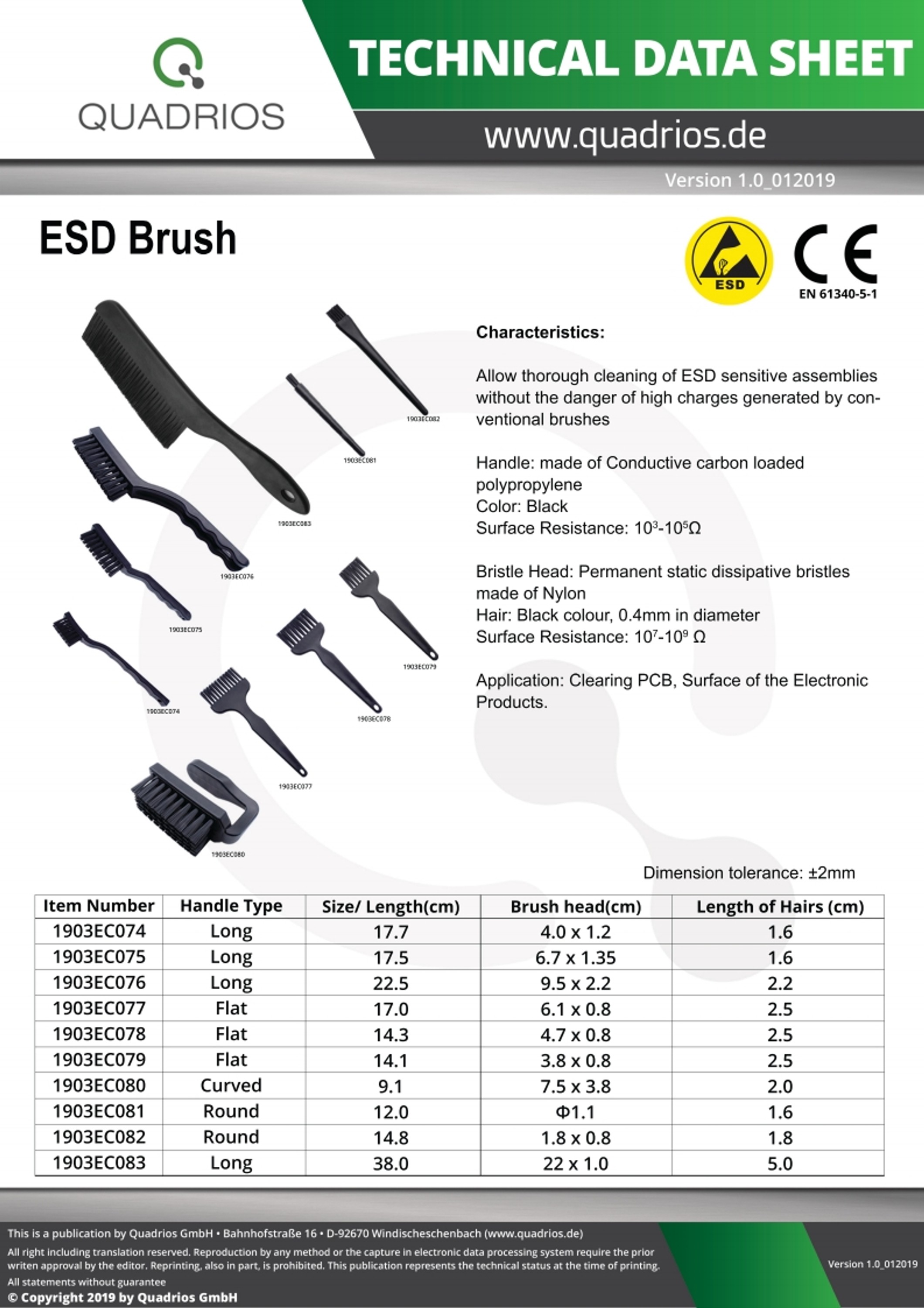 Esd Reinigungsburste Pinsel 17 Cm Kopf 6 1 Cm Borstenlange 2 5 Cm En 5 1 Quadrios
