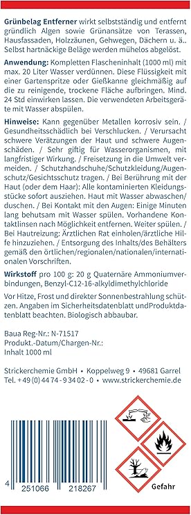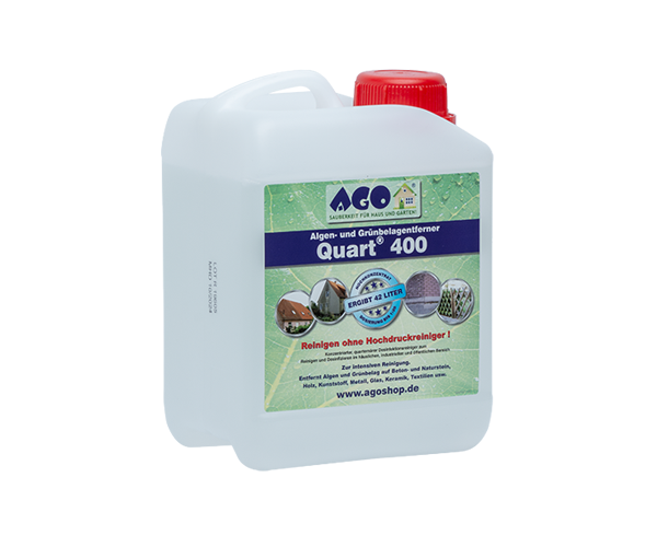 AGO Quart das Konzentrat für hocheffektive Bekämpfung von Algen, Moos, Flechten und Grünbelägen Der Algenentferner Quart 1000 ist ein ganz leichter Desinfektionswirkstoff, der einmal aufgetragen 1518 Monate lang die Oberfläche leicht desinfiziert und dadurch Mikroorganismen abtötet. Sicherheitsdatenblatt Hinweis Biozide sicher verwenden Vor. 1 l = 19,98 € BiozidProdukte vorsichtig verwenden Vor Gebrauch stets Etikett und Produktinformationen lesen!.