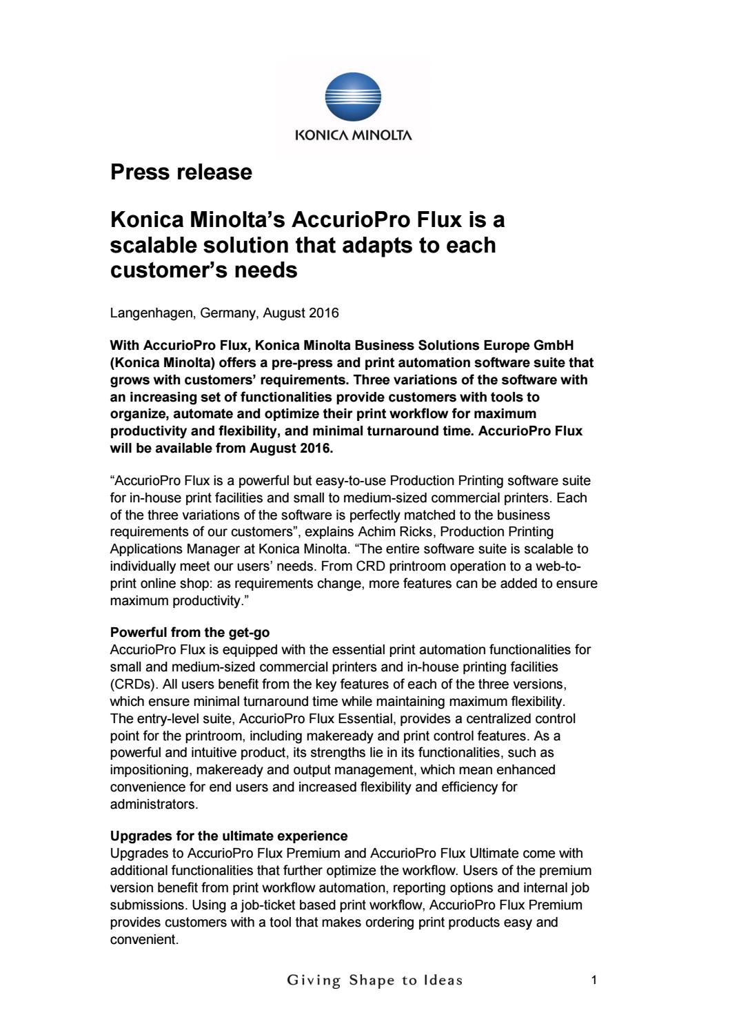 Pr Konica Minolta Accuriopro Flux By Konica Minolta Business Solutions Europe Gmbh Issuu