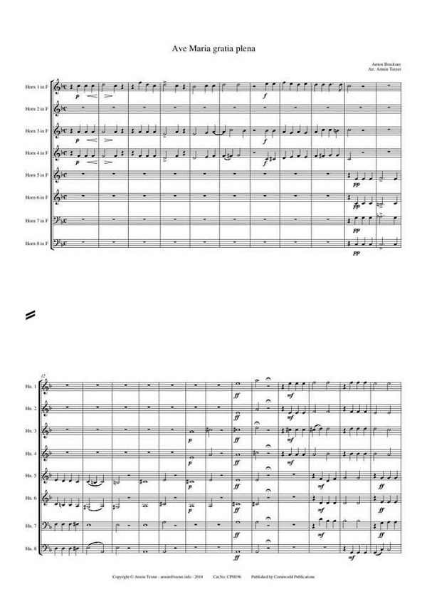 Bruckner A Arr A Terzer Ave Maria Gratia Plena Fur 8 Horner Blechblasersortiment Kobl