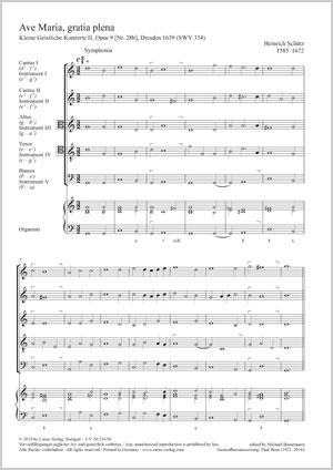 Heinrich Schutz Ave Maria Gratia Plena Partitur Carus Verlag