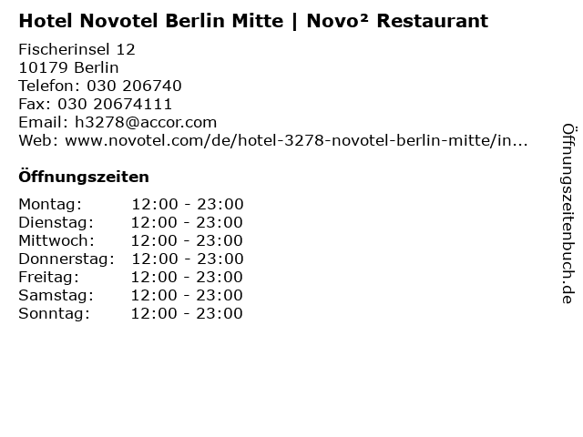 ᐅ Offnungszeiten Hotel Novotel Berlin Mitte Novo Restaurant Fischerinsel 12 In Berlin