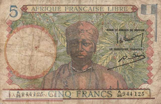 Banknoten De Franzosisch Aquatorial Afrika 5 Francs 006 Vg Banknoten