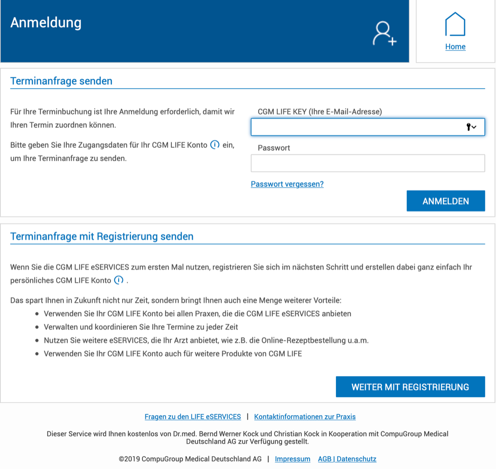 Herzlich Willkommen zur Terminvereinbarung zur Rechtsberatung EMail Adresse Diese Frage ist erforderlich * Wir schützen Ihre Privatsphäre und geben Ihre EMail nicht an Dritte weiter Sie können der Verwendung der EMailAdresse zu Werbezwecken jederzeit widersprechen Senden Drücken Sie Ctrl Enter. Herzlich willkommen im Corona Testzentrum Cannstatter Wasen, wir führen im Auftrag des Gesundheitsamtes der Stadt Stuttgart und der kassenärztlichen Vereinigung BadenWürttemberg Coronatests durch. Login name The login name is an access identification which can be freely selected by you You can allocate, change or delete it after every successful login After allocation of a login name, login can be effected with this login name or with the 10digit user number.
