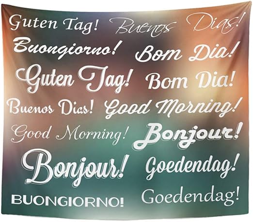 Soefipok Tapisserie Polyester Stoff Drucken Home Decor Bonjour Retro Guten Morgen In Vielen Sprachen Und Stilen Dia Wandbehang Tapisserie Fur Wohnzimmer Schlafzimmer Wohnheim Amazon De Kuche Haushalt