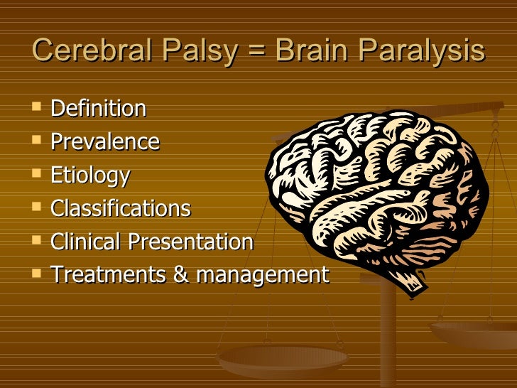 Cerebral Palsy Guide was founded upon the goal of educating families about cerebral palsy, raising awareness, and providing support for children, parents, and caregivers affected by the condition Our easytouse website offers simple, straightforward information that provides families with medical and legal solutions. Cerebral palsy 4 Definition Cerebral Palsy (CP) is a group of permanent disorder of the development of movement and posture, causing activity limitation (Hockenberry & wilson) Cerebral palsy (CP) is a motor disorder, the condition involves disturbances of sensation, perception, communication, cognition and behavior, secondary musculoskeletal. Glossary acquired cerebral palsy — cerebral palsy that occurs as a result of injury to the brain after birth or during early childhood Apgar score — a numbered scoring system doctors use to assess a baby's physical state at the time of birth asphyxia — a lack of oxygen due to trouble with breathing or poor oxygen supply in the air ataxia— the loss of muscle control.