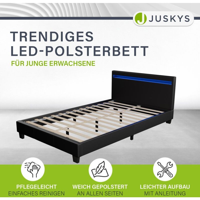 Polsterbett Verona 1 0 Cm Bettgestell Inkl Led Beleuchtung Lattenrost Matratze Schwarz Kunstleder Einzelbett Jugendbett Artlife