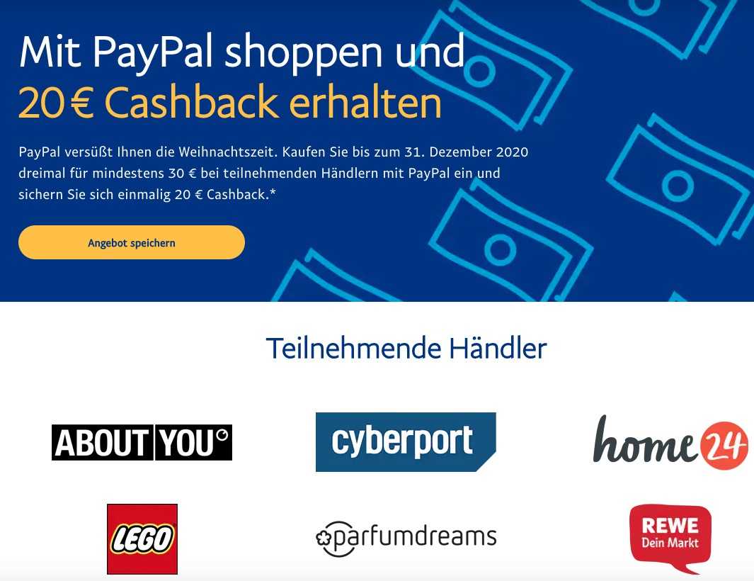 Paypal Cashback Bei 3 Einkaufen Fur Je 30 In Teilnehmenden Shops