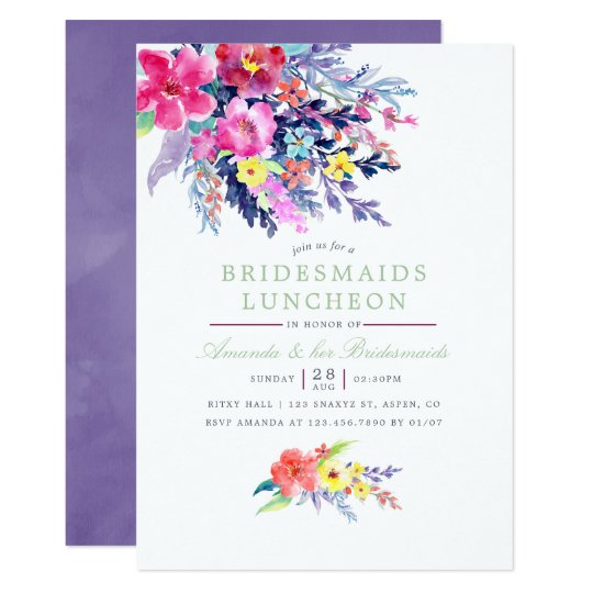 Buntes Aquarell Blumenbrautjungfern Mittagessen Einladung Zazzle De