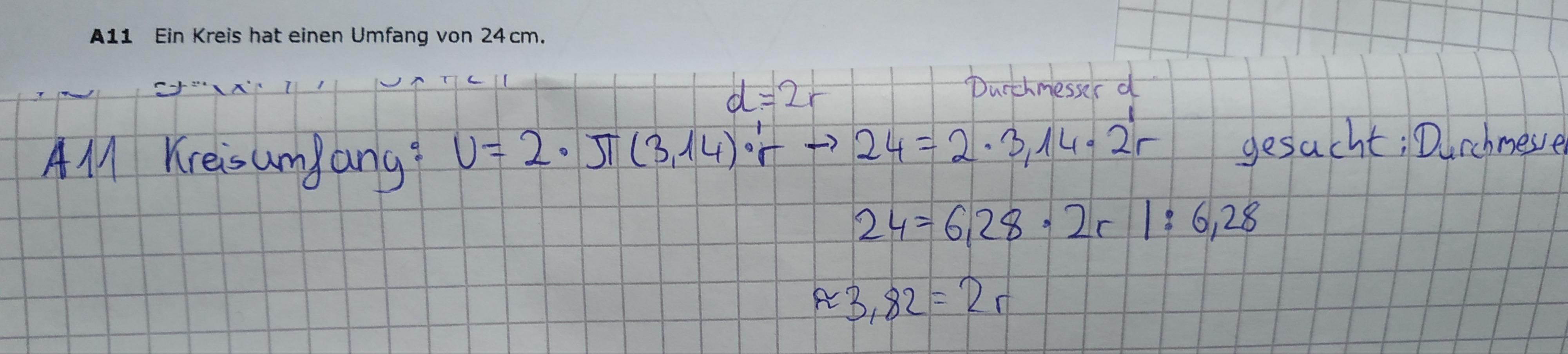 Ist Der Umfang Hier Nr 11 Nicht Das Gleiche Wie Durchmesser Mathe Mathematik