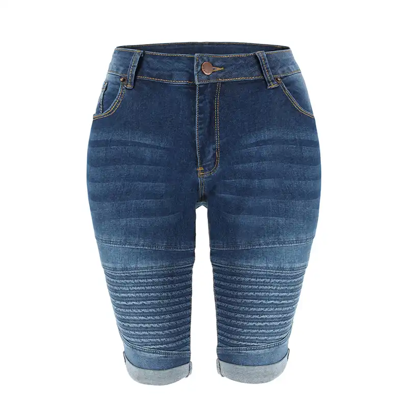 Denim Bermuda Shorts Frauen Mitte Steigen Elastische Knie Lange Shorts Sommer Kurvige Stretch Moto Kurze Jeans Hosen Jeans Aliexpress