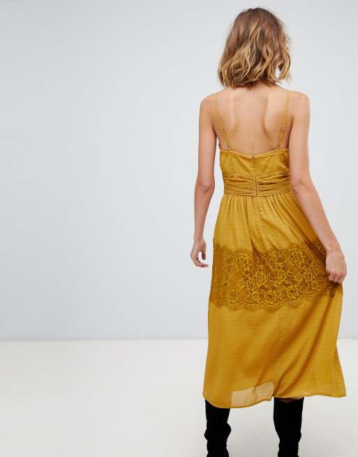 Moon River Langes Kleid Mit Spaghetti Tragern Und Spitzenbesatz Asos