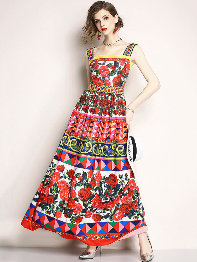 Maxikleid Armellos Langes Kleid Und Tragern Chiffon Rot Und Print Party Kleid Milanoo Com